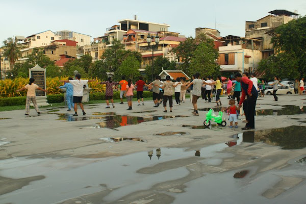 Vietiniai khmerai cia megsta sporta – vakarais visi parkeliai prisipildo ivairiausio amziaus zmoniu. Vieni uzsiima aerobika pagal garsiausia muzika, kiti sportuoja su kamuoliu arba badmintono raketemis:
