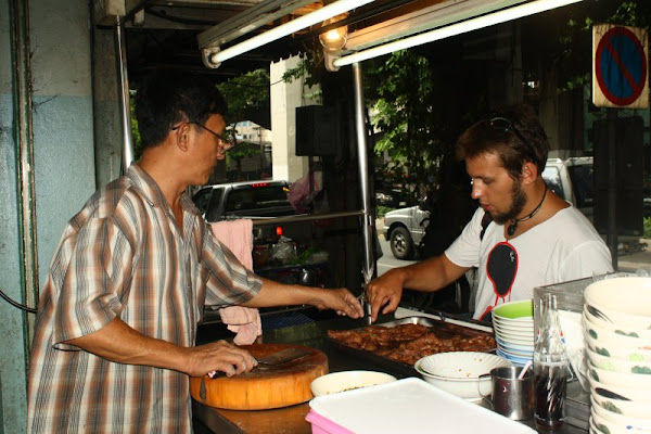 Maistas priesingai nei restoranuose gatveje labai nebrangus ir toks pats skanus. Tradicinis tailandieciu patiekalas Pad thai kainuoja apie 2Lt. Visi patiekalo ingridientai sudeti i viena didele keptuve. Issirenki makaronus ir cia pat viska sumaiso, imusa kiausini, sliuksteli keleta padazu, apkepa ir patiekalas per minute jau garuoja vienkartineje leksteje. Staliuko cia nera, tad maista valgyti tenka atsistojus, jeigu pasiseka, gauni kede atsisesti.