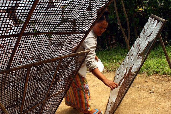 Ryziu augintojos ir paploteliu springrolsams gamintojos. Per diena vidutiniskai tokiu paploteliu padaro apie 200 vnt. ir dziovina juos ant saules prie gatves.