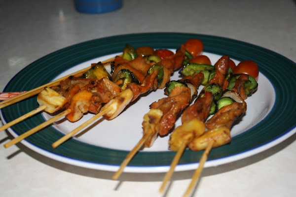 Tailandietiska uzkanda – ant pagaliuku sumauti vistienos gabaliukai su ananaso, pomidoro ir pipiro gabaliukais, bei pakepinti ant groteliu. Vienas toks pagaliukas kainuoja apie 0,4 Lt. Galetu ir Lietuvoje tokius kepti pakelese. Labai patogi ir skani uzkanda, daznai vakarais ragaudavome sveciuodamiesi Chiang Mai pas Ruta ir Viliu. 🙂