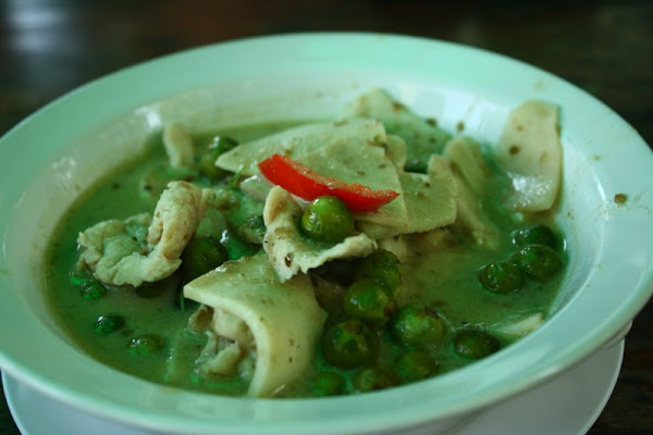 Labai astrus zaliasis karis (green curry), kuri valgydamas Karolis net apsiasarodavo. Dabar jau net neprisimenu, kas slepiasi po vistienos ir surio gabaleliais, paprastai buna arba makaronai arba darzoves. Asaras spaudzianti astruma suteike tie zali pipiriukai, kurie pries valgant yra isimami is lekstes.