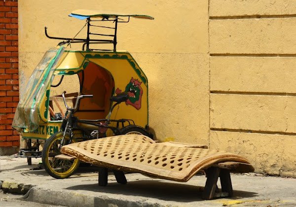 Ir pats dazniausias transportas, kaip mes vadinom – filipinietiskas tuk-tukas – prie paprasto mazo dviracio privirintas „lopsys“, kuriame galima susigrusti dviese. Vairuotojai dazniausiai patys skurdziausi Filipinu gyventojai, miegantys tuose paciuose savo triraciuose arba salia ju – atskridom i Manila 5 h ryto, ir iskart ejom pasivaikscioti, tai matem labai daug gatvese mieganciu zmoniu.