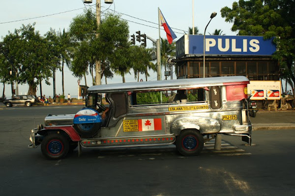 Vienas is Manilos, ir kartu visu Filipinu, simboliu – dzipiniai – vietoj autobusu vazinejantys spalvingi dzipai-sunkvezimiai, kuriuose irengti du suolai. Dzipiniu marginimo tradicijos cia, matosi, gilios – kiekvienas vairuotojas stengiasi savo dzipini paversti meno kuriniu, tiek is isores, tiek viduje. Priekyje, kur pas mus iprastai uzrasomas marsrutas, jie uzsiraso, ka tik sugalvoja – zmonos varda, dekojima Dievui ar siaip kokia nesamone. Viduje irgi galima rasti ju stipraus tikejimo irodymu – virs stiklo numegztas uzrasas „Jesus loves me“ ar pan. O marsrutai buna uzrasyti ant sono, nedidelemis raidemis – pamatai, kai dzipinis jau beveik buna pravaziaves, bet paskui isikirtom sistema ir mieste vazinejomes jais – labai patogu ir pigu (apie 0.5 Lt).